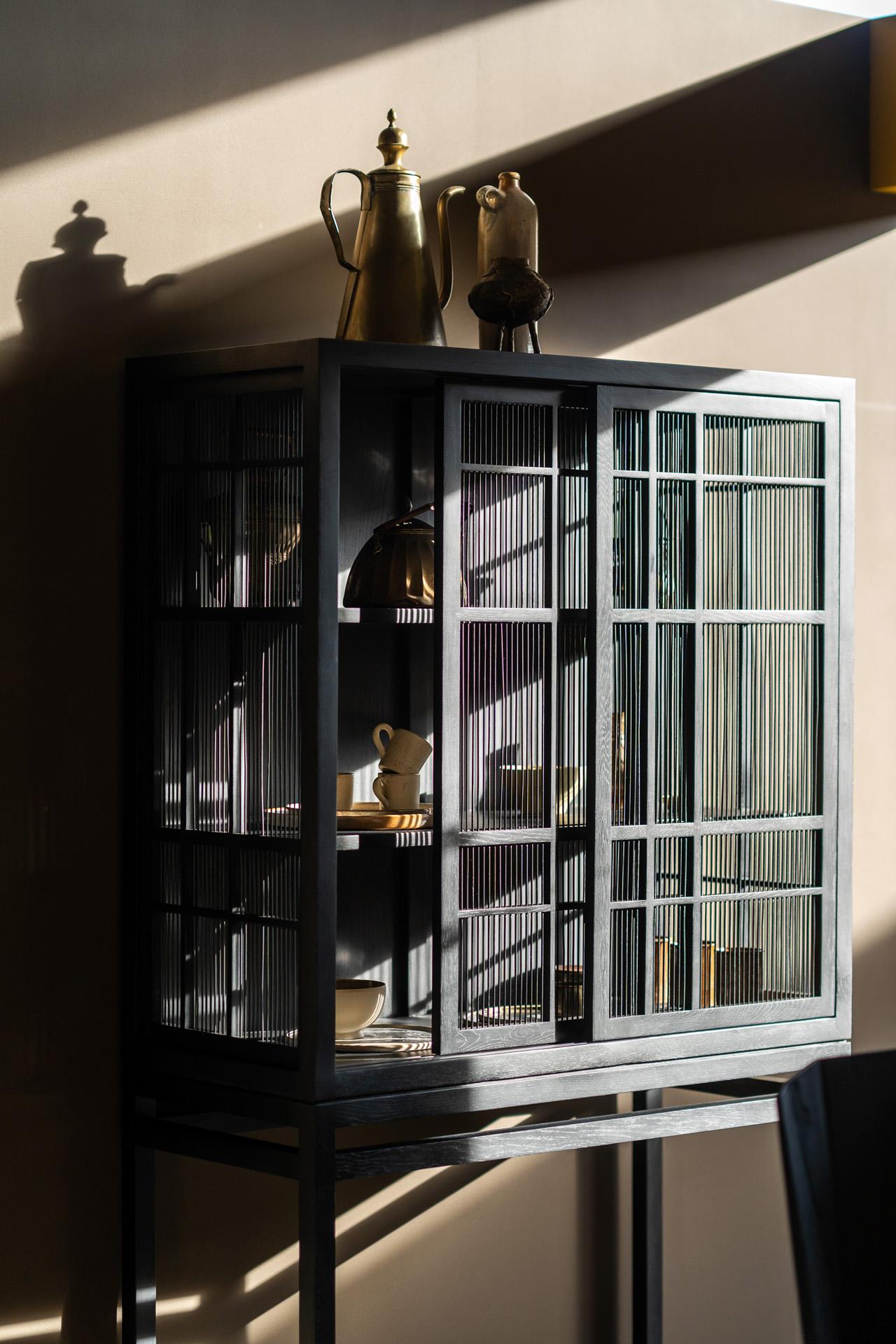 Like a shroud, the large sliding doors with bamboo spokes let light shimmer through. This creates an inequivalent sense of mystery and intrigue. The Burung storage cupboard in solid oak and bamboo, by Carlos Baladia, is designed with the personal objects you want to have close in mind.