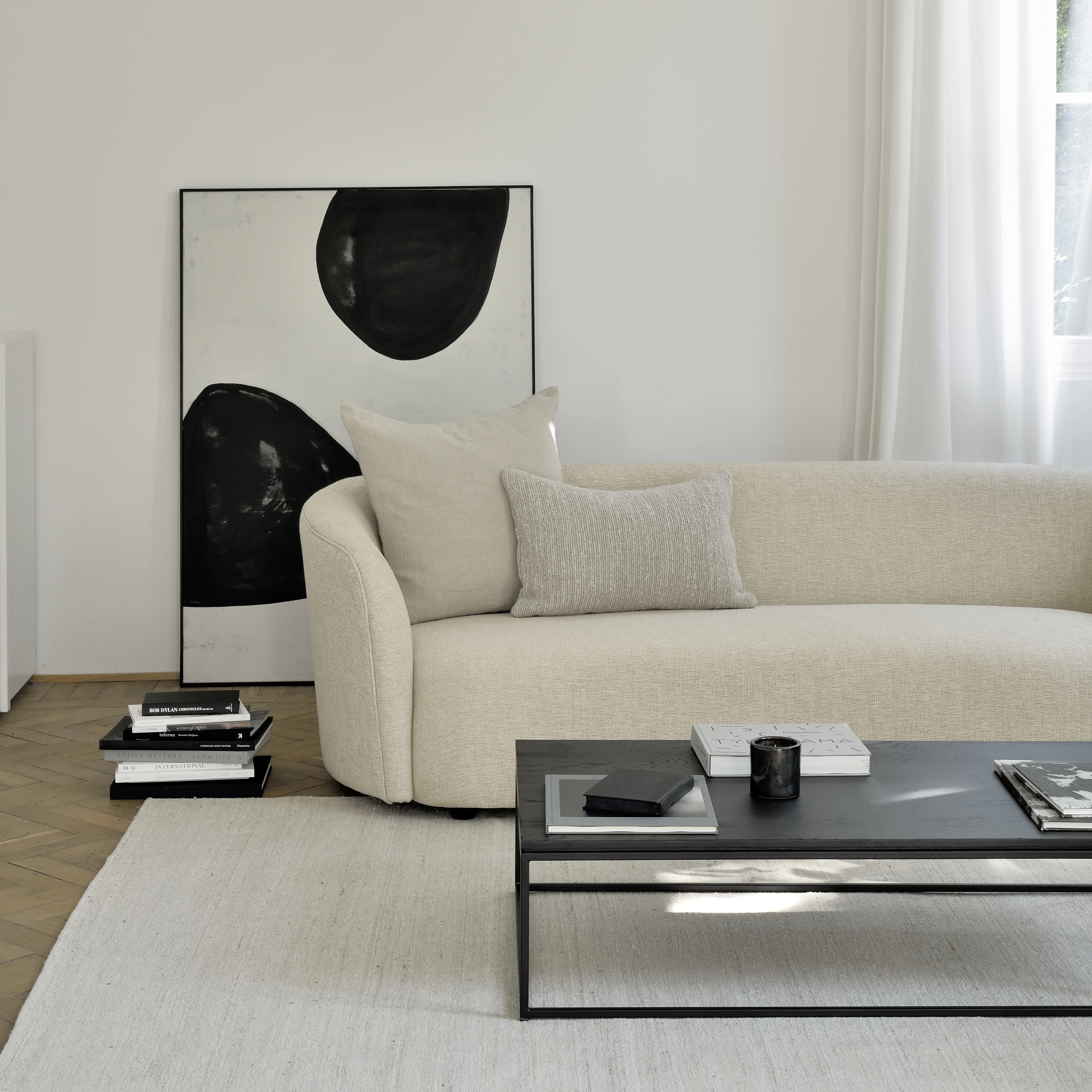 When drawing the Ellipse sofa, designer Jacques Deneef thought of an elegant piece with a generous seating. The natural fabric is woven exclusively for Ethnicraft in Belgium. Its coating repels stains, preventing small accidents of life. Available in "oatmeal", this sophisticated yet simple colour will fit perfectly in an urban apartment as well as a country house.