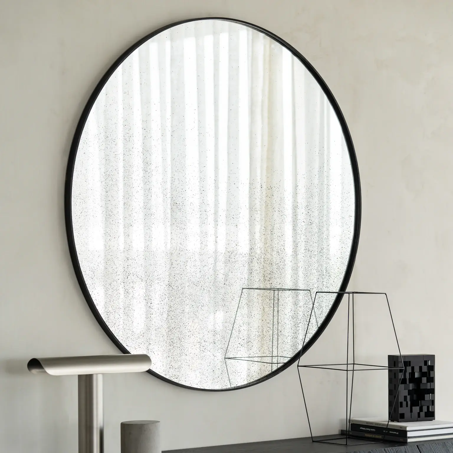 This aged round mirror finds itself in the middle ground between functionality and art. Adorning the living room as wall art or serving a practical purpose in a bathroom or dressing, the unique piece gives the functional object an artful twist.