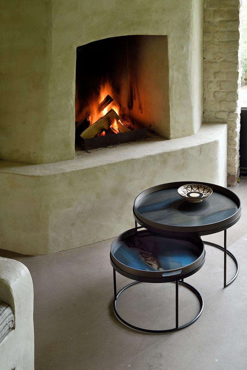 The round Tray table set by Ethnicraft is one of our most versatile pieces: while it serves its function as a coffee table, its ability to adopt different trays allows you to mix or match various colors and patterns, creating a personal piece that is uniquely yours. And of course, a set equals twice the fun and creativity.