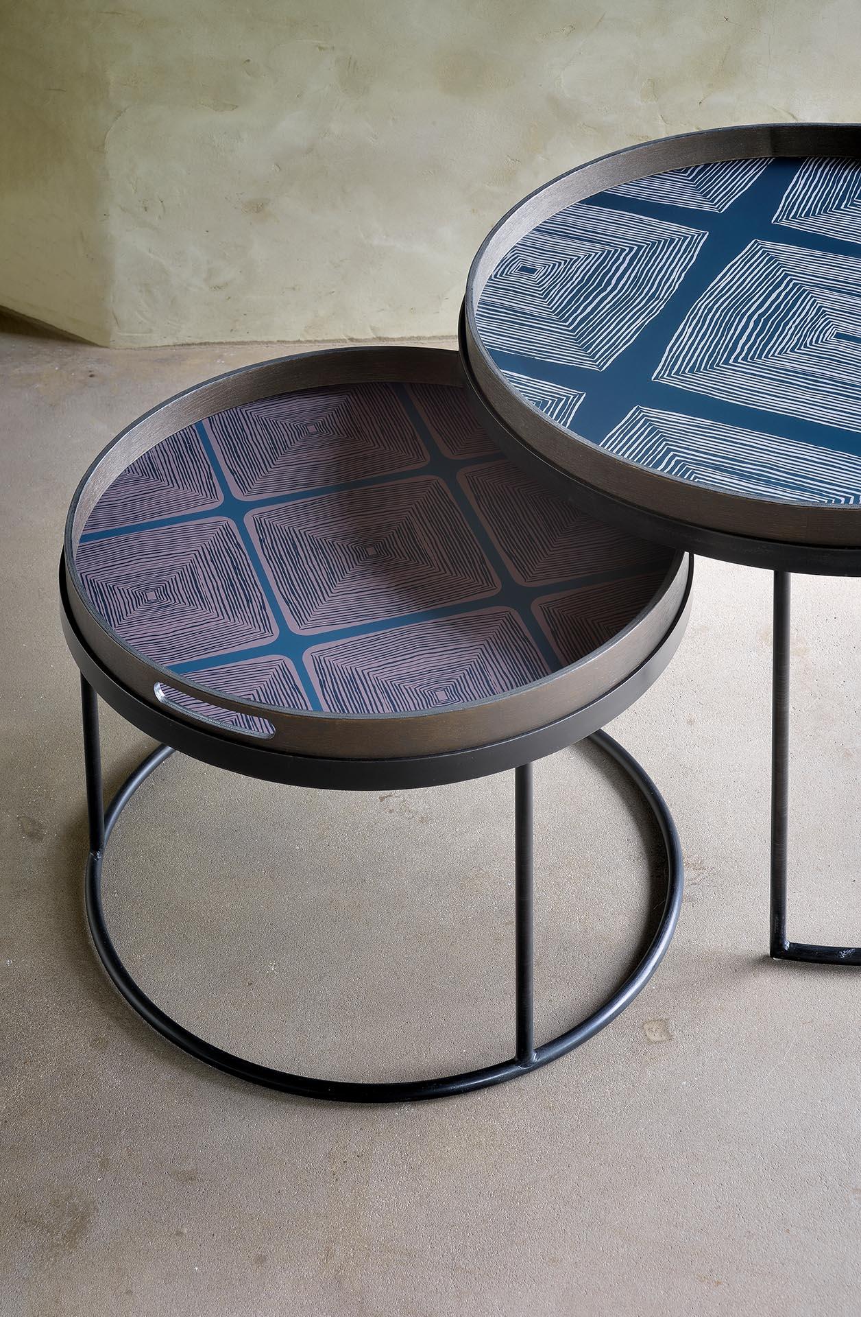 Sold as a set of 2 tables. To be combined with a small and a large round tray. Trays to be ordered separately.