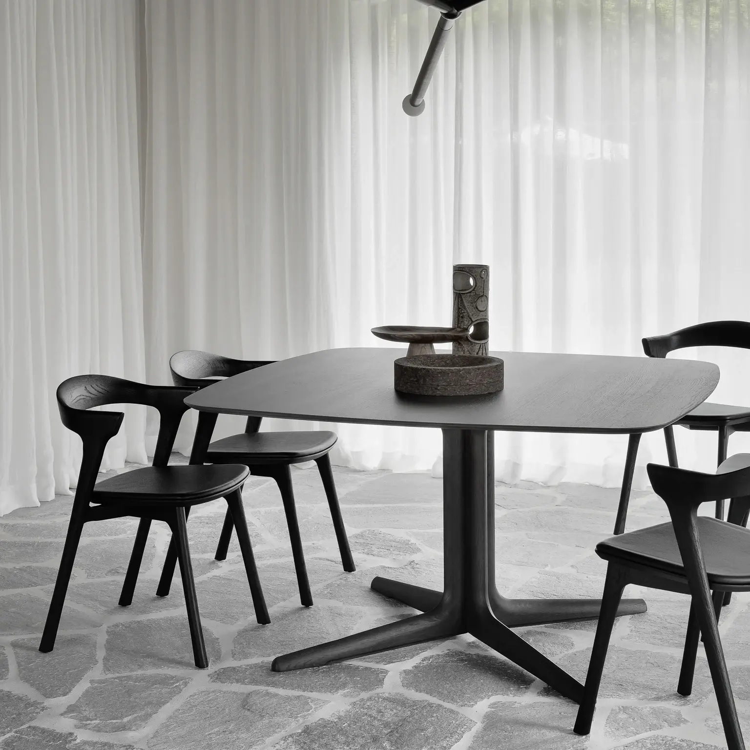 Inspired by the vaults within grand architectural designs, the Corto's central-footed base provides both visual interest and practical stability with less leg disturbance for your guests. The solid oak brown tabletop is crafted into the perfect shape, with unique rounded corners to create welcoming and comfortable social or professional gatherings.