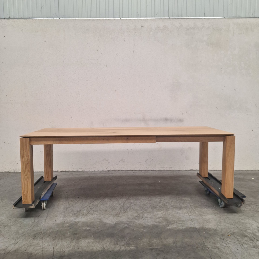 Slice est une table de salle à manger au caractère unique, mais nous y avons ajouté un petit plus. Cette table de salle à manger en chêne massif d'Ethnicraft peut facilement être rallongée sans que le motif du bois ne soit interrompu.