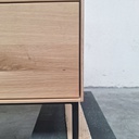 Gemaakt van massief eikenhout met een lakafwerking en zwarte metalen poten.
