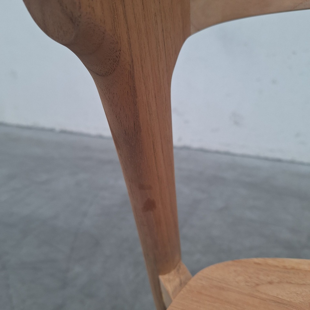 Reminiscent of a goat's curved horns, the Bok collection combines sculptural elegance and contemporary crafting into a graceful and airy form. The Bok dining chair in teak is designed for use in the open air, ideal for elevated outdoor entertaining.