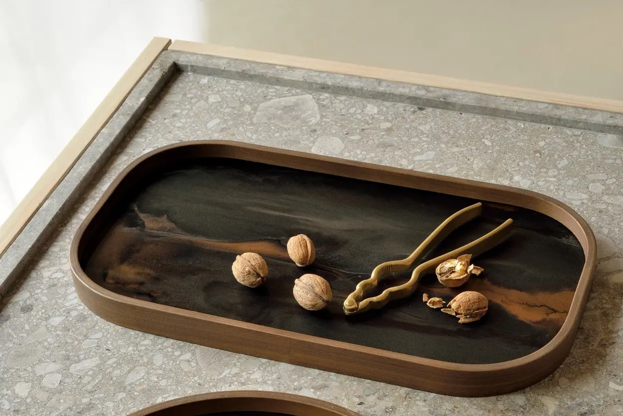 Organic movement meets linear shapes in the Linear Flow tray collection. This Bronze Organic glass valet tray is inspired by the ink drawings at the beginning of the design process, when the pigment hits the glass it takes on a remarkable life of its own. Complementary effects are revealed in unexpected ways, where hand sketched and painted linear patterns generate a truly distinctive finish.