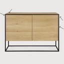 Practicality without sacrificing style. The contrasting characteristics of wood and the rectangular metal frame of the Monolit sideboard by Ethnicraft create a unique backdrop for all modern media equipment.