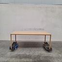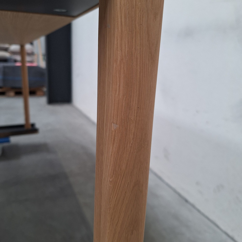 Made from an oak veneer table top with a varnish finish and solid wooden legs.