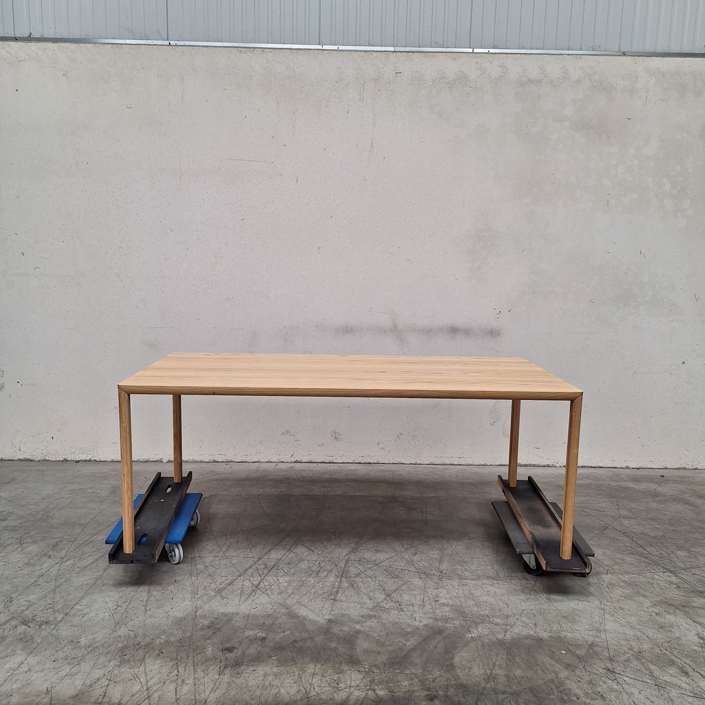 With sleek bevelled legs, the tabletop seems to float effortlessly above. The Air dining table by Ethnicraft is a strong and lean dining table disguised in a simple, clean and minimal design. Inspired by the lightness experienced with the bed of the same name.