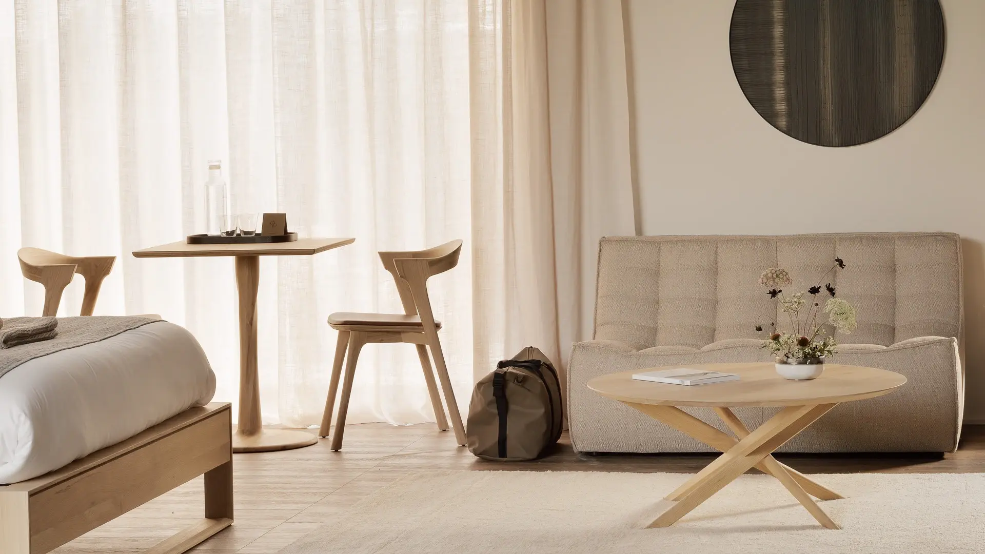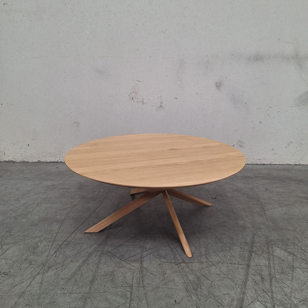The Mikado coffee table by Ethnicraft, designed by Alain van Havre, is not simply a smaller version of the Mikado dining table. It's a complete reinterpretation of its larger design and a study of balance and symmetry.