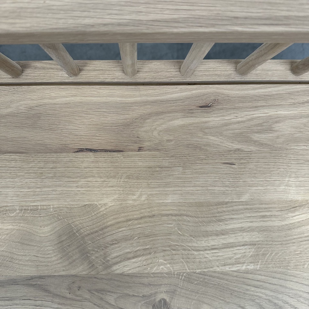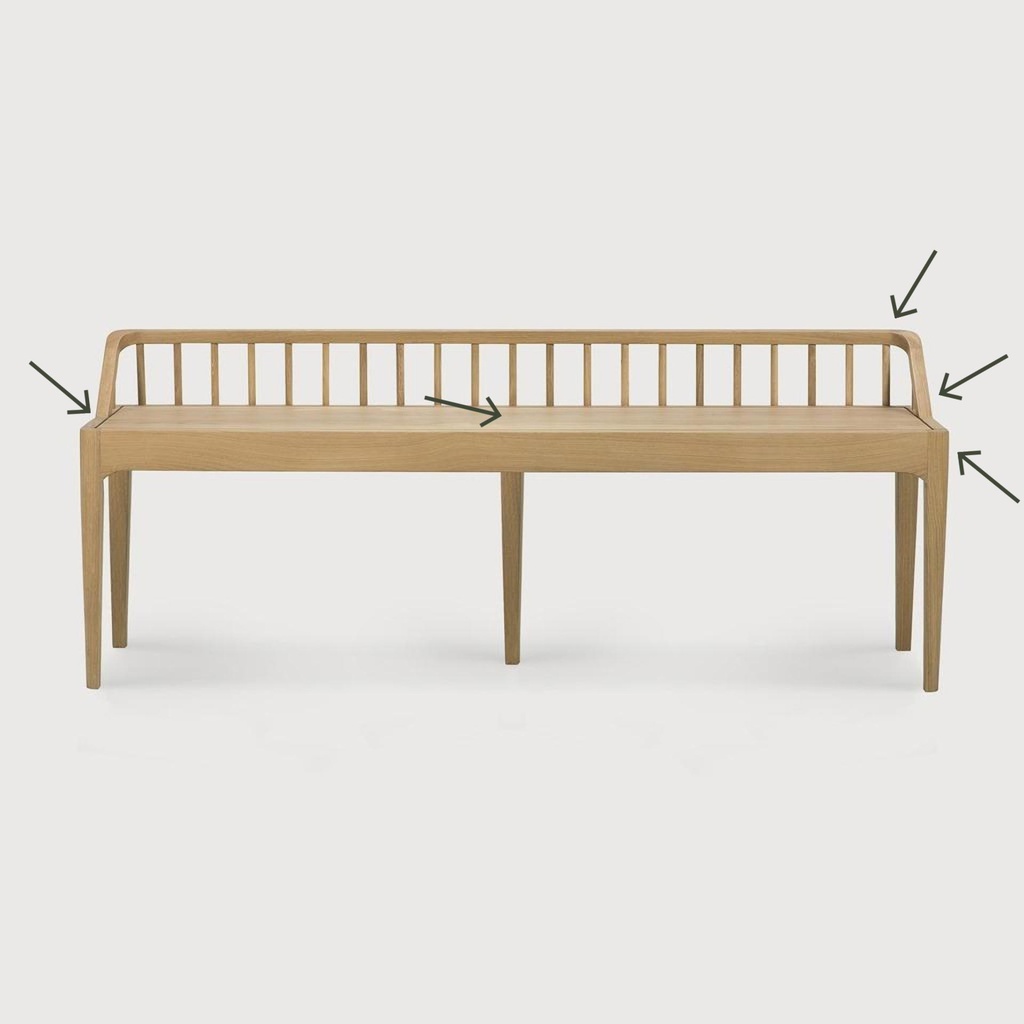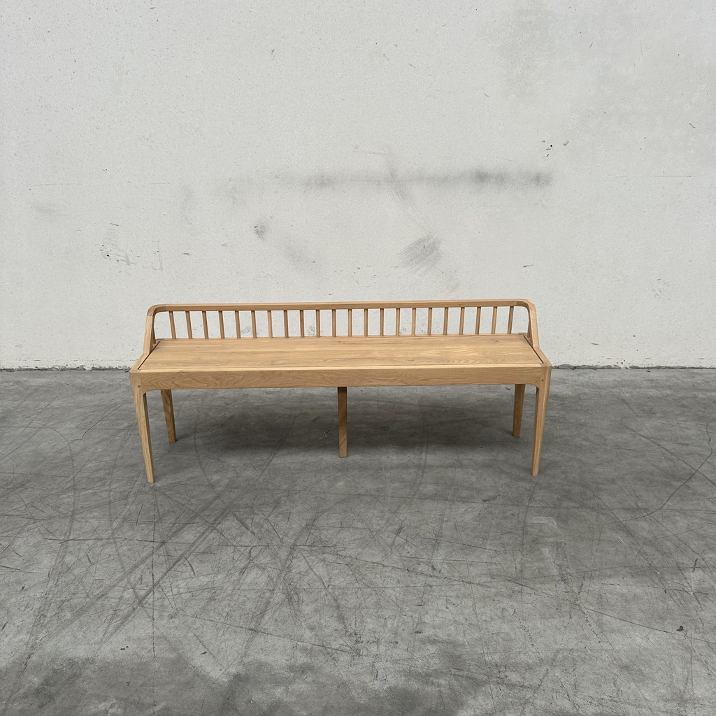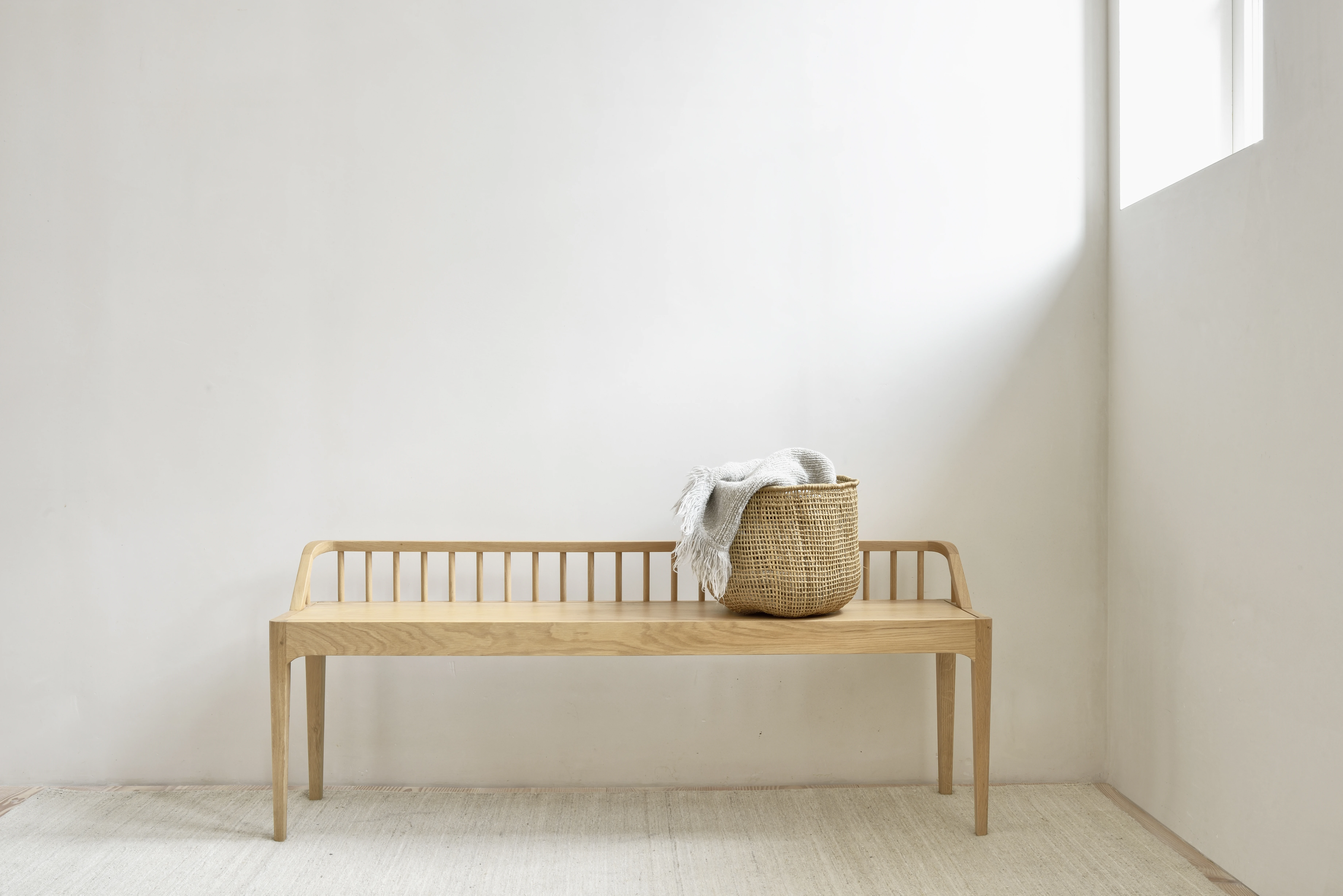 The Spindle collection by Ethnicraft found its inspiration in the traditional spinning wheel and incorporates perfectly aligned spokes into the backseat. Wherever you choose to place it, the Spindle bench in solid oak is a striking piece.